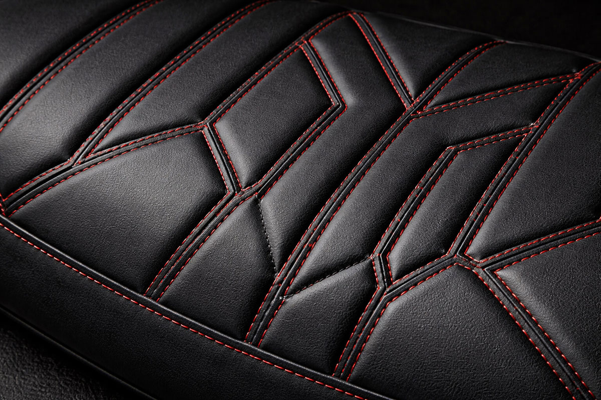 Fil contrasté ou ton sur ton. Le dessin de la couture change le caractère de la moto